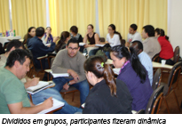 Após o intervalo do café da tarde, os participantes formaram grupos para desenvolver um trabalho. A proposta era criar uma empresa e, com base nas informações dadas durante o dia pela instrutora Maria Aparecida Lima Moreira, discutir todas as etapas relacionadas ao desenvolvimento e lançamento de um novo produto de limpeza. O principal objetivo dessa dinâmica foi mostrar que a colocação de um novo produto no mercado pode levar de seis meses a dois anos, dependendo das várias questões a serem solucionadas. Em alguns casos, as análises podes até recomendar o não lançamento.