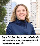 Paula Cristina Silva de Jesus, de 35 anos, é Gerente Industrial na empresa Lumobras e disse que o tema do minicurso de hoje é super atual e essencial para um profissional atuante no mercado de trabalho. "Vimos durante o curso exatamente o que as empresas nos pedem: criação e simulação de fluxo, como ter pensamento enxuto, entre outros", completou a Engenheira Química. Paula ainda fez questão de elogiar o CRQ-IV, pela iniciativa de disponibilizar o treinamento aos registrados, o instrutor Christopher Thompson, que mostrou total domínio sobre o assunto, e o Lean Institute Brasil, pela qualidade dos cursos oferecidos.