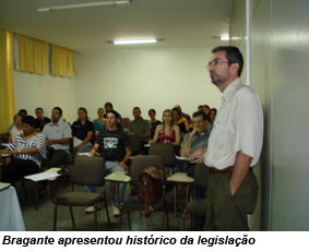 Com a apresentação de um histórico sobre a legislação ambiental no Brasil desde a década de 1930, o Bacharel em Química Tecnológica Flávio Luis Bragante iniciou o minicurso que ministrou neste sábado na cidade de Araraquara. Patrocinado pela Caixa Econômica Federal e organizado pelo CRQ-IV, o evento ocorreu das 8h30 às 17h30 no hotel Shelton Inn e teve como tema "Gestão de resíduos para pequenas e médias empresas". Um dos primeiros alertas feitos pelo palestrante foi o rigor com que o País trata os crimes de natureza ambiental, lembrando que as multas e até as penas de prisão podem ser aplicadas em toda cadeia causadora dos danos. Do diretor da empresa, passando pelo Responsável Técnico e até mesmo um operador que tenha feito um descarte inadequado podem ser penalizados, advertiu Bragante.