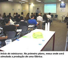 Além da parte teórica, o curso prevê dinâmicas para permitir que os participantes apliquem os conceitos explicados. Entre elas está a simulação de uma fábrica de sucos, na qual um grupo assumirá o papel de clientes, enquanto outros procurarão atender aos pedidos recebidos. A ideia é mostrar os acertos e erros cometidos. O curso prosseguirá até às 17h30.
