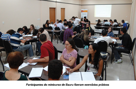 Este ano foram realizados 12 minicursos, sendo quatro na Capital e os demais nas cidades de Araraquara, Bauru, Campinas, Piracicaba, Ribeirão Preto, Santos, São José dos Campos e Sorocaba, o que permitiu o atendimento de mais de 400 profissionais.