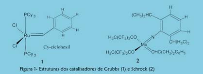 A metátese é uma reação que ocorre em presença de um catalisador metálico. O catalisador utilizado por Grubbs (chamado de catalisador de Grubbs) é um composto organometálico de rutênio e o catalisador de Schrock é um composto organometálico de molibdênio (vide figura 1).