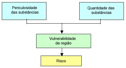 Esta metodologia baseia-se no fato de que o risco de uma instalação industrial para a comunidade e para o ambiente, circunvizinhos e externos aos limites do empreendimento, está diretamente associado não apenas às características das substâncias químicas manipuladas, suas respectivas quantidades, mas também à vulnerabilidade da região onde a instalação está ou será localizada. Este princípio é mostrado na Figura 1.