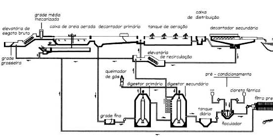 Figura 1 - Esquemático do sistema convencional de tratamento de esgotos